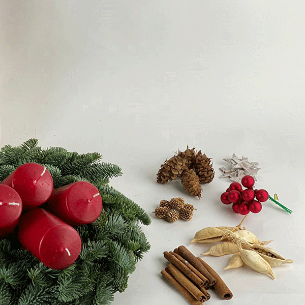 - une couronne diamètre 30cm en mix ou en Nobilis ou Nordmann