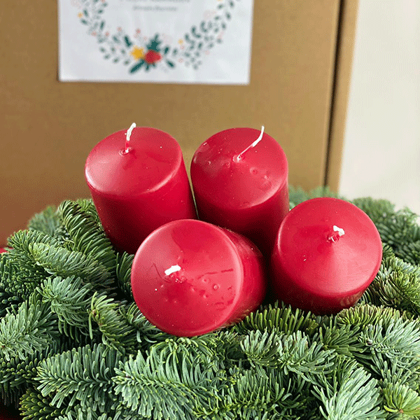 - 4 grosses bougies rouges ou blanches au choix – elles sont toutes sécurisées par le bas